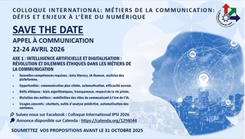 Métiers de la communication à l'ère numérique » : colloque international à l'IPSI en avril 2026...